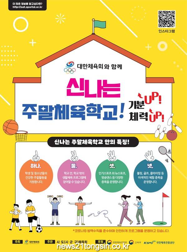 ‘신나는 주말체육학교‘는 학교 ’안‘과 ’밖‘ 2가지 프로그램으로 나눠 진행한다.