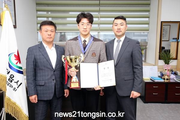 ▲ 정읍시장, ‘제65회 춘계 전국 검도 대회’ 우승 선수 격려뉴스21통신전북/김문기기자=이학수 시장이 ‘제65회 춘계 전국 중·고등학교 검도 대회’ 남자 개인전에서 우승을 차지한 정읍고등학교 오윤근 선수와 감독, 협회 관계자를 초청해 격려했다.