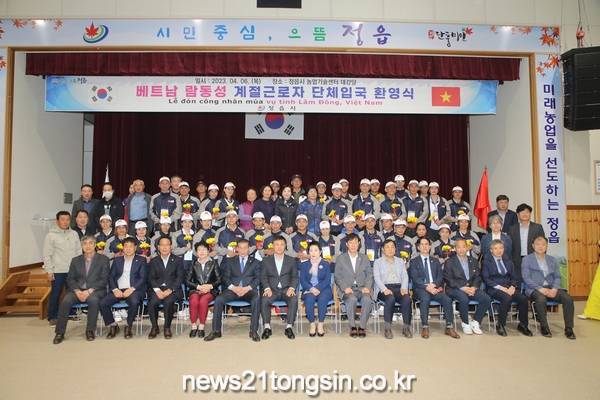 ▲ 정읍시= 베트남 계절근로자 입국환영식뉴스21통신전북/김문기기자=본격적인 영농철을 앞두고 정읍시에 외국인 계절근로자가 단체 입국해 농촌인력난 해소에 보탬이 될 전망이다.