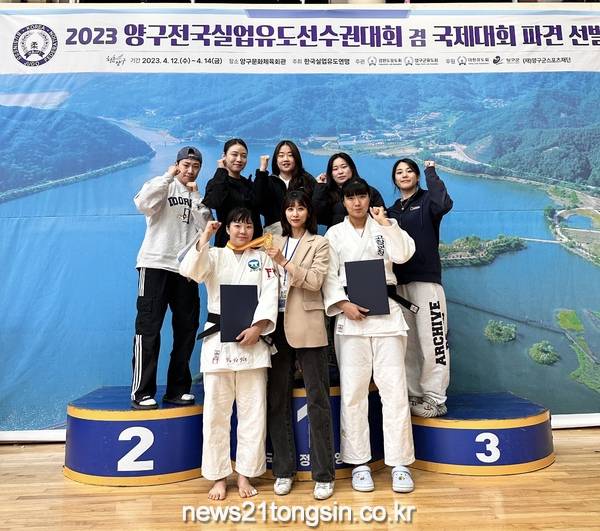 ▲ 고창군청 여자유도팀=양구실업유도선수권대회 금1, 동4 ‘쾌거’뉴스21통신전북/김문기기자=고창군청 여자유도팀이 강원도 양구문화체육회관에서 열린 ‘2023 양구 전국실업유도선수권대회(4월12~14일)’에서 개인전 금메달 1개와 동메달 4개를 획득하는 쾌거를 거뒀다.