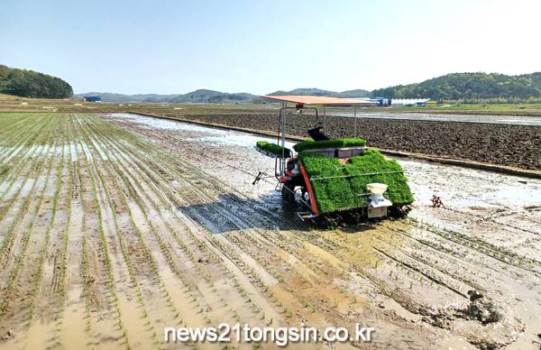 ▲ 서천군, 벼 이기작 품종 ‘ 빠르미’ 첫 모내기서천군농업기술센터(소장 장순종)에 따르면 지난 20일부터 이틀간 문산면 김경태 농가에서 관내 첫 모내기를 시작했다고 밝혔다.