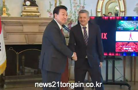 ▲ 사진=KBS NEWS 영상 캡처방미 중인 윤석열 대통령과 만난 미국의 콘텐츠 플랫폼 기업, '넷플릭스'가 한국 콘텐츠에 25억 달러, 우리 돈 3조 3천여억 원을 투자하겠다고 밝혔다.