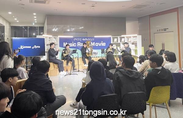 또한, 25일 저녁에는‘2023년 공공도서관 문화가 있는 날’ 공모사업에 선정돼 대한민국 금관악기 홍보대사인 ‘코리안 아츠 브라스’의 공연으로 지역 주민들에게 큰 호응을 받았다.