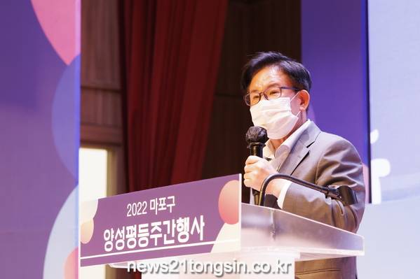 ▲ 사진=지난해 9월 열린 ‘2022 마포구 양성평등주간행사’에 참석한 박강수 마포구청장마포구(구청장 박강수)가 지역의 양성평등 정책의 거점이 될 ‘마포여성동행센터’를 조성하고, 27일 오후 2시 개관식을 갖는다.