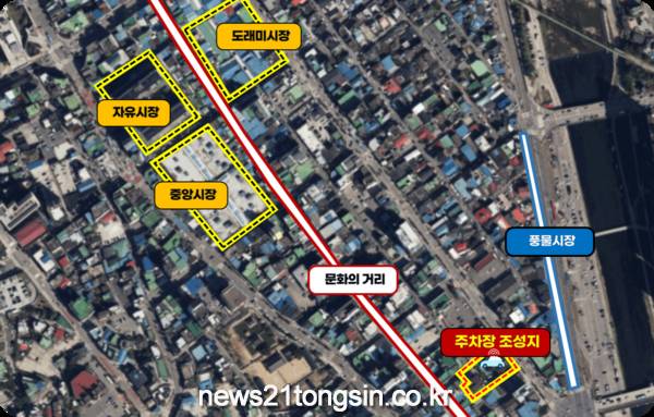 ▲ 사진-문화의거리 주차장 위치원주시는 지난 26일 중소벤처기업부 주관 전통시장 주차환경개선 사업 공모에 선정, 국비 107억 원을 확보했다.
