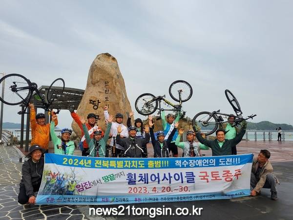 장애인의 날 출정식을 가진 후 척수장애인 5명은 경기도 파주시 임진각을 출발해 한반도 최남단 땅끝항 표지석에 도착했다. 이번 척수장애인의 국토 종주 도전에 함께 참여한 예수병원 직원들과 함께 기념촬영을 끝으로 10일간의 국토 대장정이 성공적으로 마무리됐다.