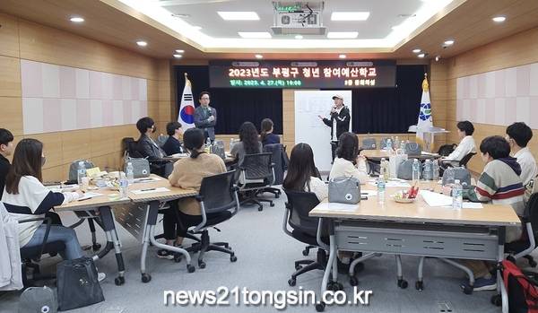▲ 2023년 청년 참여예산학교 진행(사진=부평구)부평구(구청장 차준택)는 지난 27일 구청 중회의실에서 부평구 청년 19명을 대상으로 2023년 청년 참여예산학교를 진행했다.