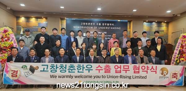 ▲ 고창군= 청춘 한우 홍콩수출 추진뉴스21통신전북/김문기기자=고창군은 지난 2일 고창부안축협판매장에서 홍콩 축산물 유통업체인 유니온 라이징그룹(대표 Tony)과 고창부안축협(조합장 김사중)간 청춘한우 수출을 위한 MOU(업무협약)를 체결했다.