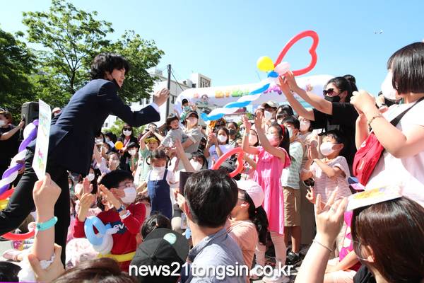▲  사진=어린이날 와글와글 대축제에서 마술공연을 즐기며 밝게 웃는 아이들서울 성동구(구청장 정원오)는 오는 7일 오후 1시부터 왕십리광장에서 제101회 어린이날을 맞아 성동 온마을 대축제 ‘와글와글’을 개최한다.