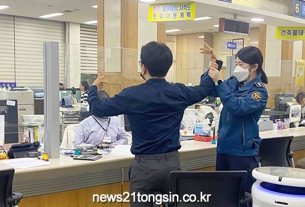 이번 모의훈련은 민원인 응대과정에 발생할 수 있는 다양한 갈등상황 속에서 민원담당 공무원과 민원실 방문고객인 민원인을 보호하기 위하여 마련되었다.