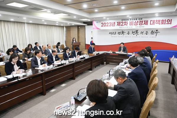 ▲ 원주시, 제2차 비상경제 대책회의 개최...주요 대책 점검원주시가 지난 2월에 이어 8일 두 번째 비상경제 대책회의를 열고 주요 경제 활성화 대책 추진상황을 점검했다.