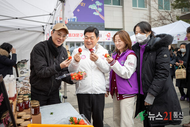동대문구(구청장 이필형)는 5일 구청 앞 미래광장에서 설맞이 농수산물 직거래장터를 개최하고, 전국 각지의 우수 농특산물을 합리적인 가격에 선보였다.이날 장터에는 남해군 · 여주시 · 나주시 · 제천시 등 전국 15개 시·군 생산자 단체가 참여해 과일, 한우, 잡곡, 버섯 등 신선한 농수산물과 지역 특산품을 판매했다. ..