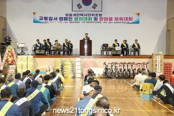 뉴스21통신전북/김문기기자=정읍시개인택시조합(조합장 문석준) 운수종사자 및 가족 400여명은, 지난 14일 정읍체육관에서 교통질서 캠페인 및 한마음 체육대회를 개최했다.
