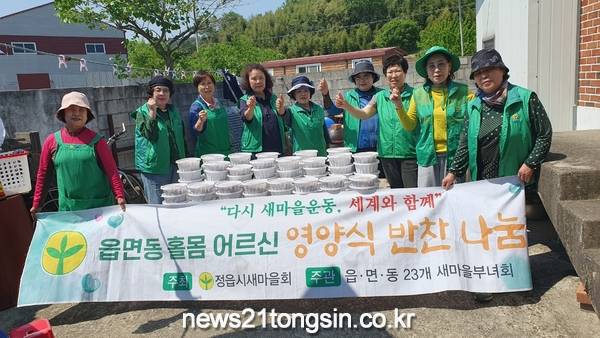 뉴스21통신전북/김문기기자=정읍시새마을회(회장 김학구)는 정읍시새마을부녀회(회장 김경란)와 덕천면 새마을부녀회(회장 이정원)는 지난 14일 식사 해결이 어려운 홀몸 어르신들을 위해‘홀몸 어르신 밑반찬 나눔 활동’을 펼쳤다.