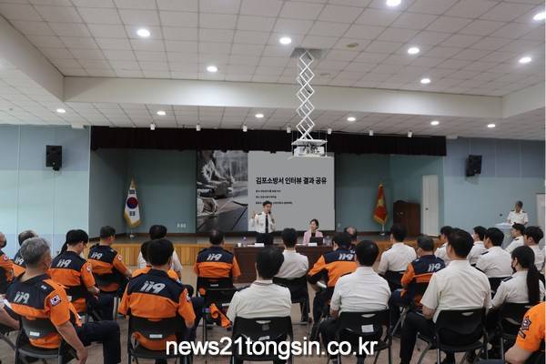 ▲ 김포소방서, 선배님 존경합니다! 후배님 존중합니다!김포소방서는 16일 본서 대회의실에서 ‘건강한 조직 즐거운 직장문화 조성을 위한 조직진단 컨설팅 중간 보고회’를 실시 했다고 밝혔다.