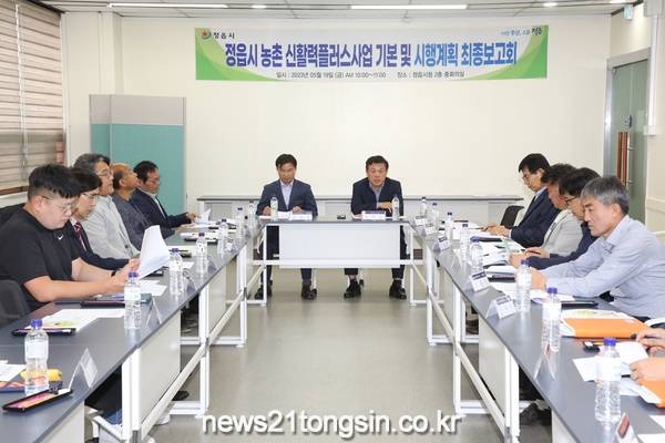 ▲ 정읍시= 농촌신활력플러스사업 기본최종보고회 개최뉴스21통신전북/김문기기자=정읍시는 19일 정읍시청 중회의실에서 이학수시장을 비롯한 추진위원, 관련부서장 등 18명이 모여‘정읍시 농촌 신활력플러스사업 기본 및 시행계획 수립용역 최종보고회’를 개최하였다.
