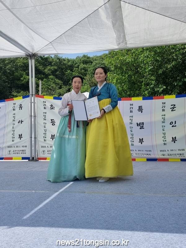 ▲ 정읍여성문화관=문화원 수강생전국 경연대회 최우수상뉴스21통신전북/김문기기자=정읍여성문화관과 정읍문화원 수강생이 지난 20일 김포다도박물관에서 열린‘제27회 예절과 다도 전국경연대회’에서 수상의 영예를 안았다.