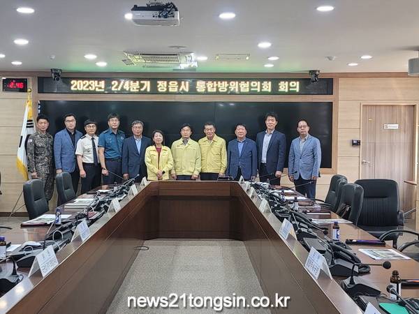 ▲ 정읍시=2023년 2/4분기 통합방위협의회 회의 개최정읍시는 지난 23일 민ㆍ관ㆍ군ㆍ경 지역 통합방위태세 확립을 위한 2023년 2분기 정읍시 통합방위협의회 정기 회의를 개최했다.