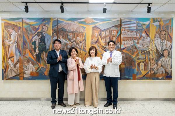 ▲ 효사랑전주요양병원장=전주대학교 박물관에서작품구매 후 예수병원에기증뉴스21통신전북/김문기기자=전주예수병원(병원장 신충식)은 최미정 작가의 작품 “선교사와 예수병원”을 효사랑전주요양병원 박진상 병원장으로부터 기증받았다고 25일 밝혔다.