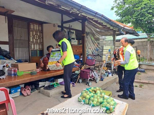 생활이 어려운 관내 취약계층 3세대를 직접 찾아 봉사활동에 참여한 직원들은 어려운 이웃들을 위해 준비한 생필품을 전달하고 따뜻한 마음으로 주민들을 위로했다.