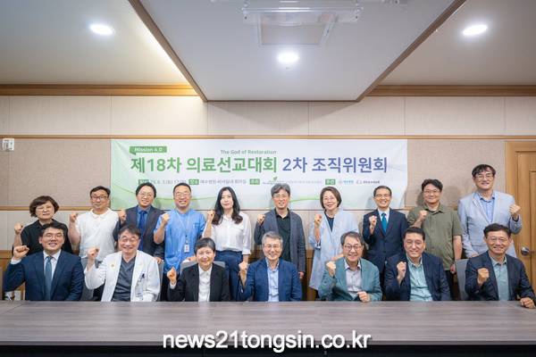 ▲ 제18차 의료선교대회 Mission 4.0 10월 7일(토)~9일(월) 개최 예정 뉴스21통신전북/김문기기자=예수병원(병원장 신충식)은 성공적인 제18차 의료선교대회 준비를 위한 2차 조직위원회를 병원 7층 회의실에서 가졌다고 5일 밝혔다.
