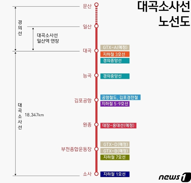 한편 대곡소사선 개통과 함께 관심을 모으고 있는 대곡~일산역(경의중앙선) 연장도 8월 중 개통이 가능한 것으로 전해졌다.
