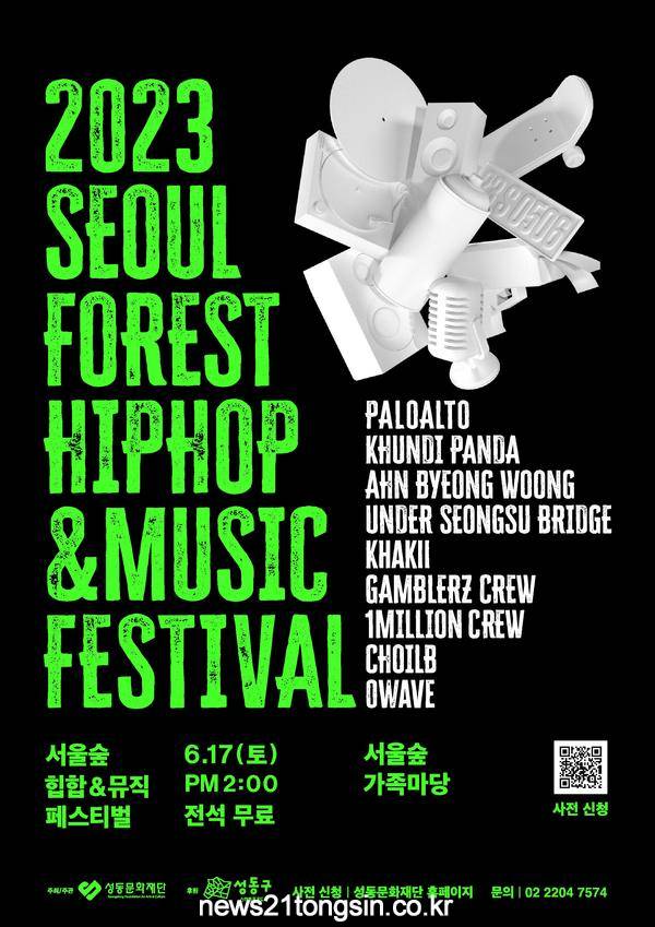 ▲  사진=2023년 서울숲 힙합&뮤직 페스티벌 포스터 서울 성동구(구청장 정원오) 서울숲공원에서 오는 17일 다양한 세대와 문화로 소통하고 즐기는 음악축제, ‘2023 서울숲 힙합&뮤직 페스티벌’이 처음 개최된다.