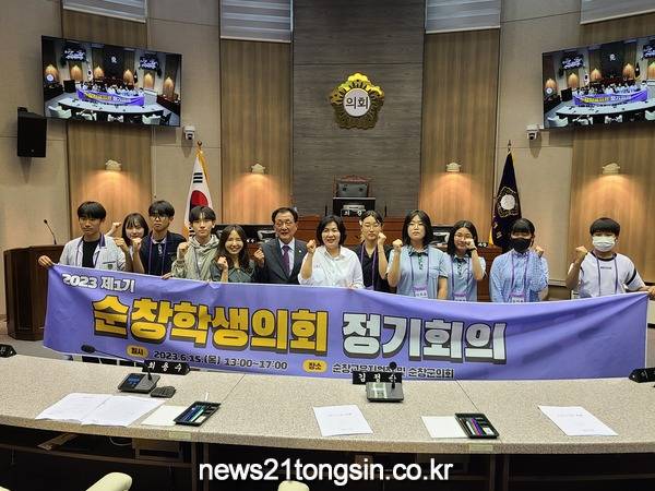▲ 순창군의회= 2023년 제1기 순창학생의회 개최뉴스21통신전북/김문기기자=순창군의회(의장 신정이)가 지난 15일 관내 학생들에게 지방의회의 기능과 역할을 경험하는 2023년 제1기 순창학생의회를 가졌다.