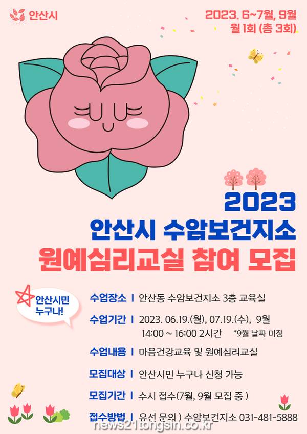 이번 프로그램은 19일 ‘내가 바로 꽃이야’를 시작으로 ▲7월 새로운 환경에서 적응하기 ▲9월 오감 만족 허브 치유의 주제로 총 3회 운영되며, 상록수보건소 자살예방센터, 안산시 정신건강복지센터와 연계해 진행한다.