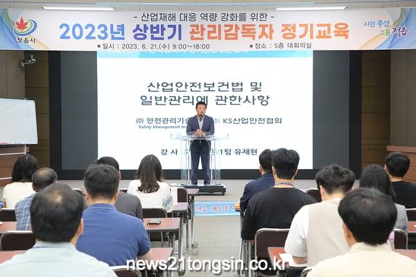 ▲ 정읍시 제공정읍시는 21일 정읍시 소속 현업사업장 관리감독자 70여명을 대상으로 안전한 현업사업장 조성을 위한 상반기 관리감독자 정기 교육을 실시했다.