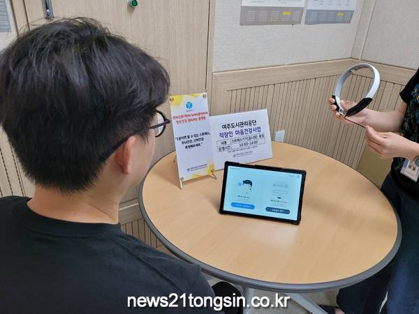 ▲ 여주시정신건강복지센터, 여주도시관리공단 직원 대상 ‘찾아가는 마음건강검진’ 실시여주시정신건강복지센터는(센터장 임정희) 지난 9일, 21일 종합운동장 및 국민체육센터에서 여주도시관리공단 직원을 대상으로 ‘찾아가는 마음건강검진’을 실시했다.