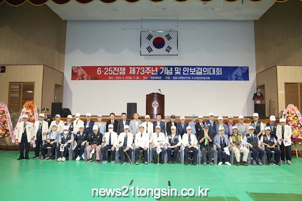 ▲ 정읍시=6.25 제73주년 기념식 개최뉴스21통신전북/김문기기자=정읍시는 지난 25일 6.25전쟁 제73주년을 맞이해 6.25참전 유공자의 희생과 헌신을 기리고 전쟁의 교훈을 되새기는 기념행사를 개최했다.