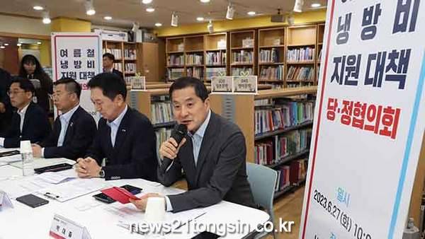 국민의힘 박대출 정책위의장은 오늘(27일) 서울 여의도 윤중초등학교에서 열린 ‘여름철 냉방비 지원대책’ 당정 협의회 후 브리핑에서 “현재 편성된 학교당 평균 전기요금이 5255만 원인데 냉방비 지원금 2400만 원을 추가로 교부해 학교당 7650만 원으로 확대하기로 했다”고 밝혔다.