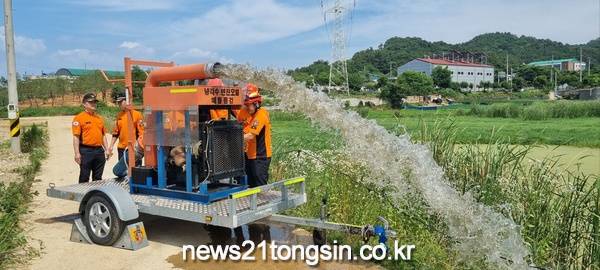 ▲  정읍소방서= 장마철 집중호우 대비 수방장비 점검 및 훈련 실시뉴스21통신전북/김문기기자=정읍소방서(서장 박경수)는 장마철 집중호우에 대비하여 대형양수기 등 수방장비 점검 및 사용법 훈련을 실시했다.