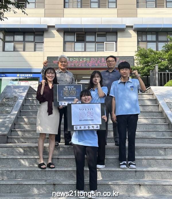 김포고등학교(교장 강영길)가 27일(화) 마약으로부터 안전한 학교를 만들고, 학생을 보호하기 위한 마약 범죄 예방 ‘NO EXIT’ 챌린지에 동참했다고 밝혔다.