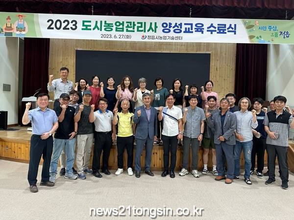 정읍시농업기술센터(소장 전정기)는 지난 27일 제2청사 대강당에서 ‘2023년 도시농업 관리사 양성과정’ 수료식을 열고, 도시농업 관련 전문지식 과정을 이수한 교육생들에게 수료증을 전달했다.