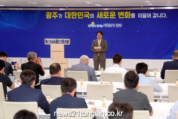 ▲ 민선8기 1년 브리핑[뉴스21통신/장병기 기자] 강기정 광주광역시장은 29일 “지난 1년은 변화와 도전으로 채워진 8760시간이었다”며 “대한민국의 민주주의를 이끌었던 광주는 이제 대한민국의 새로운 변화와 도전을 이끌어가겠다”고 밝혔다.