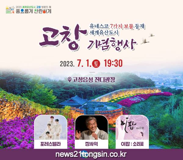 ▲  고창군제공뉴스21통신전북/김문기기자=전라북도 고창군이 ‘유네스코 7가지 보물 등재 기념행사’를 오는 7월1일 저녁 7시30분 고창읍성 광장에서 연다.
