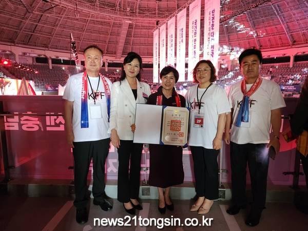 ▲  류명선 부회장 `대통령 국민포장` 수상서울 중구 장충체육관에서 개최된 한국자유총연맹 창립 69주년 기념행사에서 류명선 한국자유총연맹 정읍시지회 부회장이 자유민주주의 수호와 국민운동 활성화에 이바지한 공로를 인정받아 '대통령 국민포장'을 수상했다.
