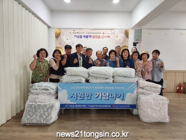 ▲ 가남읍, 『시원하고 따뜻한 가남나기』 사업 추진가남읍 지역사회보장협의체(공동위원장 이복환, 김동식)는 지난 3일 여름 대비 저소득 가구의 에너지 취약계층의 복지 향상을 도모하기 위한 『시원하고 따뜻한 가남나기』 사업의 시작을 알렸다.