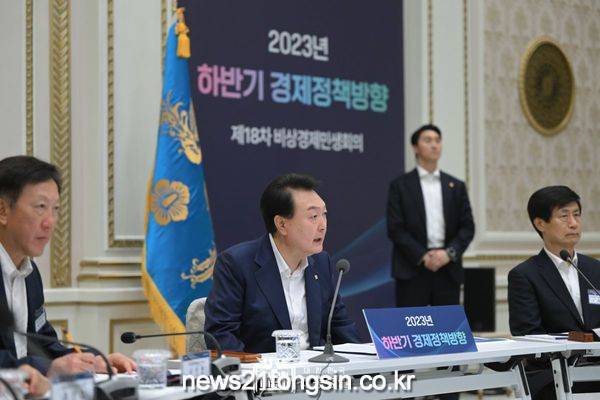 추경호 경제부총리는 오늘 회의에서 경기 부양과 수출 확대를 핵심으로 하는 하반기 경제정책 방향을 보고하고, △경제활력 제고 △민생경제 안정 △경제체질 개선 등 3대 중점 과제와 중장기 경제정책을 설명했다고 대통령실은 밝혔다.