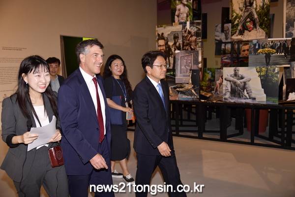 [뉴스21통신/ 장병기 기자] 강기정 광주광역시장과 아키바 토르 주한이스라엘 대사는 5일 오전 제14회 광주비엔날레 국가관인 이스라엘 파빌리온을 함께 관람하고 상호 우호증진 방안을 논의했다.