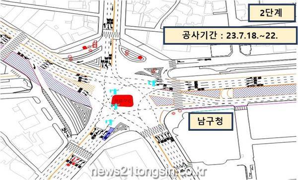 ▲ 백운교차로 당초 [뉴스21통신/장변기 기자] 광주광역시도시철도건설본부는 도시철도 2호선 공사에 따라 오는 12일 남구 백운교차로 구간의 단계별 교통 전환을 실시한다.