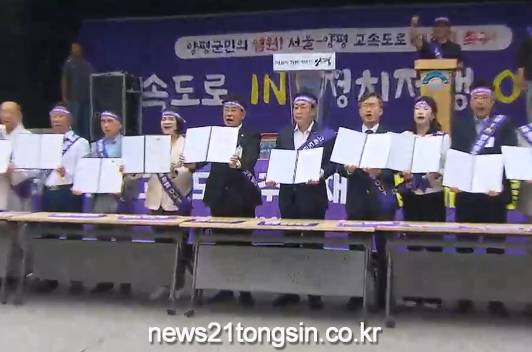 양평군 이장협의회 등 지역주민 4백여 명이 서울-양평 고속도로 사업 재개를 위한 범군민대책위원회를 출범시켰다.