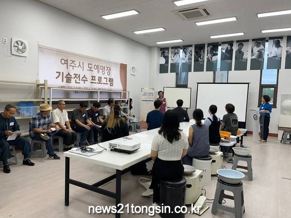 ▲ 2023년 여주시 도예명장 기술전수 프로그램 운영여주시(시장 이충우) 관광체육과 도예팀은 2023년 7월 9일(일)에 2023년 여주시 도예명장 기술전수 프로그램 운영을 시작했다. 여주시 도예명장의 오랜 경험과 고도의 기술력을 예비 청년도예인에게 전수함으로써 도자산업 현장으로의 성공적인 유입을 도모하기 위해 개설한 이번 프로그램은 여주도자문화센터 1층 공방에서 7월 9일(일)부터 8월 26일(토)까지 매주 토, 일요일 13:00 ~ 17:00까지 14차시에 걸쳐 운영한다.