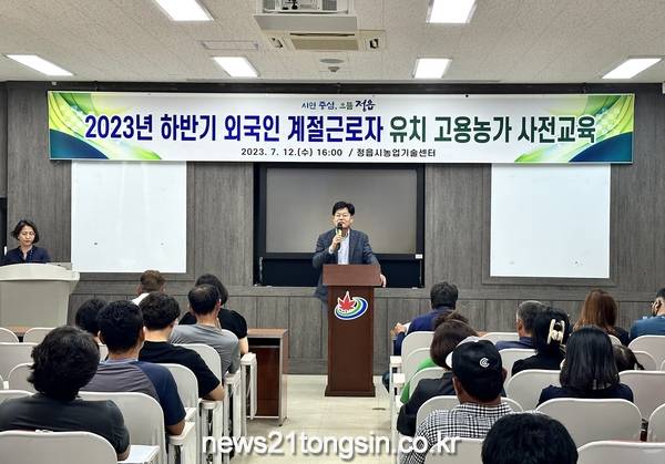 ▲  정읍시= 2023년 하반기 외국인 계절근로자 고용농가 사전교육 실시뉴스21통신전북/김문기기자=정읍시는 지난 12일 농업기술센터에서 하반기 외국인 계절근로자 고용농가 사전교육을 실시했다.
