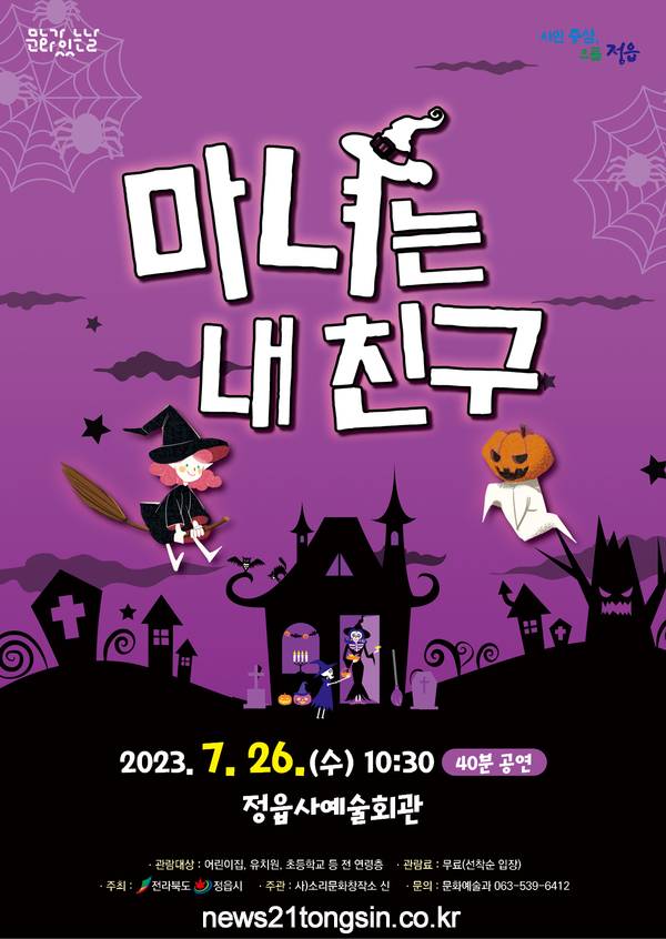 ▲  정읍사예술회관=마녀는 내 친구 공연 개최뉴스21통신전북/김문기기자=정읍시 정읍사문화예술회관에서 오는 26일 오전 10시 30분에 문화가 있는 날 프로그램 ‘마녀는 내 친구’공연이 펼쳐진다.