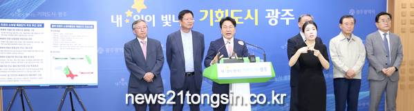 ▲ 미래차 소재 부품 장비 특화단지 선정 관련 브리핑[뉴스21통신/장병기 기자] ‘100만평 미래차국가산단’을 유치한 광주시가 ‘미래차 소재‧부품‧장비 특화단지’ 공모에서 최종 선정됐다. 이로써 광주시는 ‘인공지능(AI) 기반 국내 1위 모빌리티 도시’로의 토대를 튼튼히 구축할 수 있게 됐다.