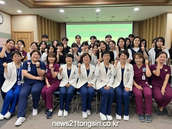 ▲  예수병원= 신규 간호사 그룹 미팅 개최함선희 간호국장은 “2014년도부터 시작한 신규 간호사를 위한 그룹 미팅은 부서 구성원 간 세대 직위를 넘어 자유로운 근무환경 조성과 의사소통을 나누는 장입니다”라고 말하며 “올해로 프로그램 10년을 맞이해, 건강한 조직문화를 마련해 나가는데 도움을 준 예수병원 간호사들에게 감사하다”고 전했다.