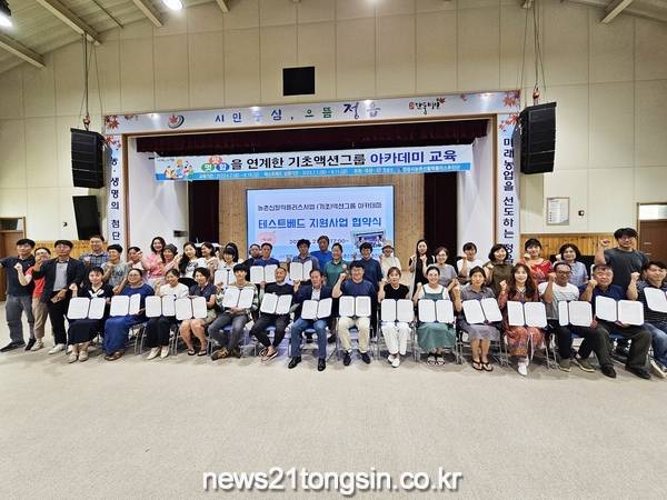 이번 협약은 기초 액션그룹 아카데미 테스트베드 시범사업에 선정된 17팀이 맛(지역푸드), 멋(문화·예술), 향(관광. 체험) 분야 등 지역 자원의 특색을 반영한 핵심주체로 성장할 수 있도록 테스트사업비를 지원하기 위해 이뤄졌다.